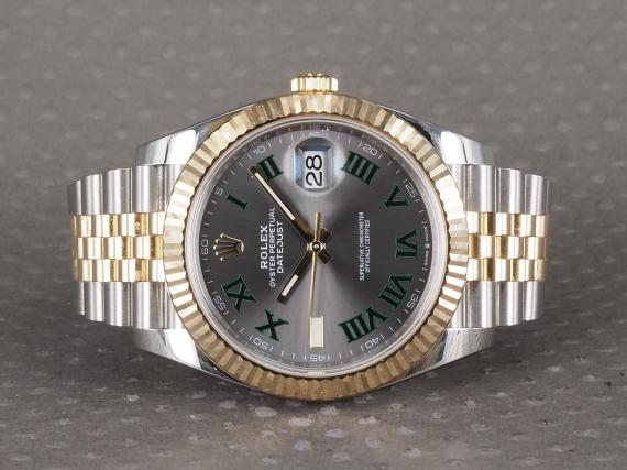 Beautiful Rolex Datejust 41, ref. 126333 from July 2021, in basically unworn condition. A great example of the well-known and classic two-tone Datejust, here in the newest 41mm version, with a beautiful grey dial with green roman numerals and a fluted yellow gold bezel. The watch sits on a Jubilee bracelet with no stretch and with the genius extension link, making 5mm adjustments possible. The watch runs on an automatic Cal. 3235 movement, presenting a 70 hour reserve and a -2/+2 second a day precession. Comes with boxes, papers, tags, certificate etc
