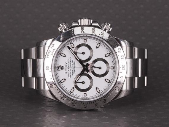 Rolex Daytona, ref. 116520 from September 2015 with AD service done in October 2019. A very nice Daytona, the iconic Rolex chronograph in a very fine condition. In a monobloc case, tachymeter bezel, both in 904L steel and a Cal. 4130 automatic movement with the Paramagnetic blue Parachrom hairspring that ensures split second precision. This is the version with ROLEXROLEXROLEX rehaut, chromalight and white APH dial. This Daytona is in great condition and comes as a complete set.