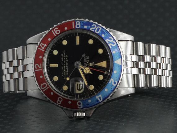 Flot Rolex GMT-Master fra 1967. Uret er med den eftertragtede Gilt dial (guld skrift) med fin patinering. Uret har den originalt lille GMT viser, original krone og originalt patineret pepsi indlæg. Uret kommer med en nyere jubilee lænke i god stand, og er senest efterset i 2011.