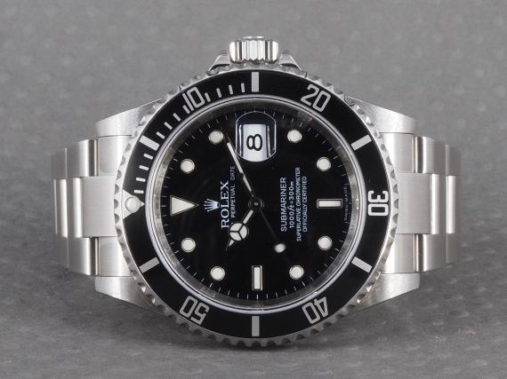 Classic and timeless Rolex Submariner, ref. 16610 from 2010 (Random series) and belongs to one of the latest production batches. This Sub is without lug holes, with solid end links and with the ROLEXROLEXROLEX rehaut engraving. A fine example of the classic Submariner. The watch has signs from usage but is fine overall condition. The watch measures 40mm, is automatic and features a date function. Comes as a complete set from EU dealership. It further comes with verification from Danish AD Klarlund, where it was also serviced in 2015.