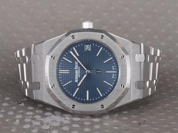 Det udgåede og ekstremt elegante Audemars Piguet Royal Oak Extra Thin, ref. 15202ST, her fra 2015. Uret blev serviceret af Audemars Piguet i 2022.