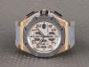Limiteret og sjældent set AP kronograf, som måler 44mm x 17mm og er fremstillet i 18 karat rosa guld. Uret byder på den velkendte "Méga Tapisserie” mønsteret skive, som her fremstår med en flot grå farve. Kransen er fremstillet i titanium. Udover kronograf funktionen byder uret på datovisning. Den øverste kronograf-pusher er diamantbesat.
