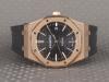 Klassisk guld AP ur i det velkendte design, med sort "Grande Tapisserie" mønstret skive, dato funktion og pink gold belagte timemarkeringer og visere. Uret måler 41mm.