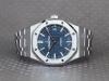 Klassisk AP ur i det velkendte design, med blå "Grande Tapisserie" mønstret skive, dato funktion og hvidgulds belagte timemarkeringer og visere. Uret måler 37mm.