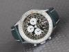Uret sidder monteret på en grøn læderrem med Breitling spænde.