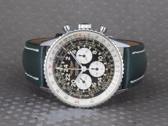 Lækker Navitimer model på 41mm, hvor kassen er fremstillet stål. Uret har en klassisk sort skive med hvide sub-dials og kronograf funktion.