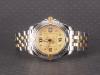Lækkert 32mm Breitling ur, udført i guld stål og er med stål lynette med fire 18K guldmarkeringer. Under urets safir glas sidder den flotte guldfarvede skive med dato angivelse og 8 diamanter.