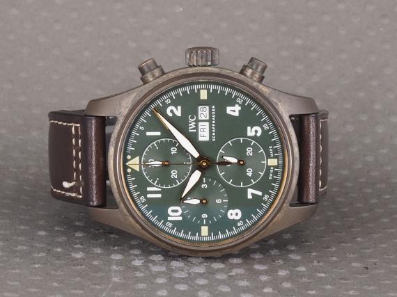 Fantastisk flot IWC Pilot Chrono Spitfire Bronze, ref. IW387902 fra September 2019.