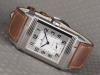 Uret måler 45.6mm x 27.4mm og er udført i stål og har en meget elegant og diskret sølv farver skive. Uret sidder på en brun original rem med stål spænde.