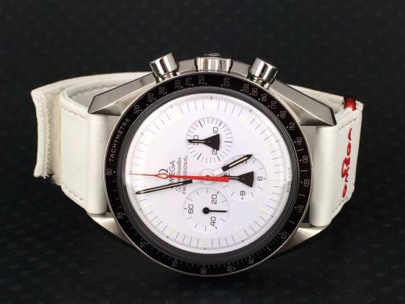 Omega Speedmaster Alaska Project. En af de mest spændende ilmiteret speedmastere til dato. Uret kommer med et stort limited edition bokssæt med en rød alu yderkasse der er designet til at beskytte uret imod ekstreme temperaturer. Uret leveres med to originale limiteret velcroremme, samt en ny original lænke og lækker aftermarket racing strap.