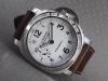 Lækkert Panerai med hvid skive, men sjældent ser til salg. Uret måler de klassiske 44mm og er med arabertal på den flotte hvide skive. Uret er med manuelt optræk og kommer som et komplet sæt.