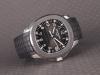 Fantastisk smukt og elegant Patek Philippe Aquanat, udført i stål med sort skive med luminova coatede skivemarkeringer. Uret er monteret på en sort "tropical" composite rem med stål foldespænde.