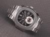 Den super eftertragtede udgåede kronograf model fra Nautilus linjen, her med sort skive der udover dato funktion, har en 12 timers kronograf subdial placeret kl 18 der osse indikerer minut tidstagning.