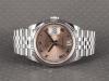 Lækkert eksemplar af den klassiske Datejust model på 36mm, her med flot og elegant pink diamant sat skive samt riflet hvidgulds lynette. Uret sidder på en Jubilee lænke uden stræk.
