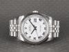 Lækkert eksemplar af den klassiske Datejust model på 36mm, her med flot og elegant hvid skive samt riflet hvidgulds lynette. Uret har få brugsspor, og sidder på en Jubilee lænke i pæn stand.