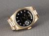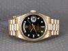 Ganske simpelt et fantastisk lækkert ur, der nærmest ikke behøver yderligere introduktion. Day-Date modellen på de klassiske 36mm udført i fuld, med en super flot diamant sat sort skive med dag og dato visning, hvilende på en fuld guld President lænke i fin stand.