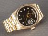 Ganske simpelt et fantastisk lækkert ur, der nærmest ikke behøver yderligere introduktion. Day-Date modellen på de klassiske 36mm udført i fuld, med en super flot diamant sat sort skive med dag og dato visning, hvilende på en fuld guld President lænke i fin stand.