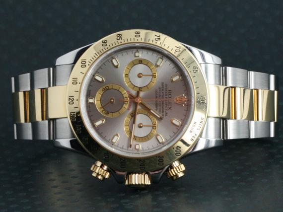 Lækkert Rolex Daytona i guld og stål. Uret er i virkelig flot stand med absolut minimale brugsspor. Urets vejl. nypris er ca. kr. 106.000.