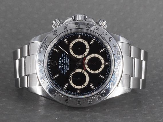Et rigtigt fint eksemplar af den udgåede og eftertragtede kronograf reference 16520 med det, af Rolex, modificerede Zenith værk. Uret her tilhører U serien som er en af sidste i rækken af 16520, før Rolex gik over til Luminova skive og visere samt solid end-links.