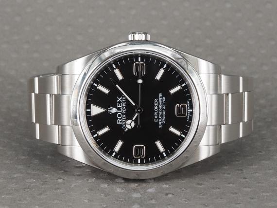 Fint eksemplar af den klassiske Rolex Explorer, ref. 214270 her fra August 2012, med service udført af Klarlund i Marts 2021.