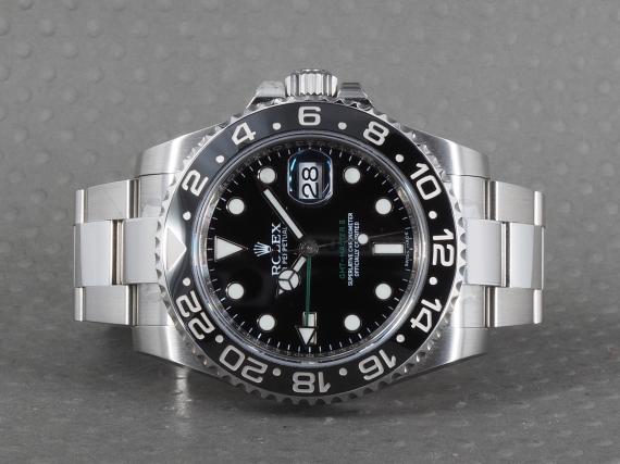 Det super flotte Rolex GMT-Master II, ref. 116710LN, her fra Marts 2017.