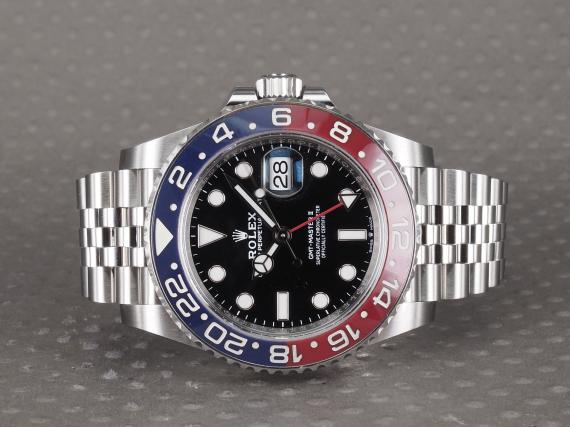 Den super populære 40mm GMT med keramisk Pepsi krans og Jubilee lænke, der blev introduceret på Basel messen i 2018. Uret sidder monteret på en Oysterlænke med Easylink, som giver mulighed for 5mm mikrojustering.
