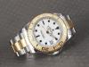 Fint midsize Rolex ur på 35mm, udført i 18K guld og stål med roterbar lynette ligeledes i guld. Uret er med en smuk hvid skive der tager sig virkeligt godt ud med den røde "Yacht-Master" skrift.