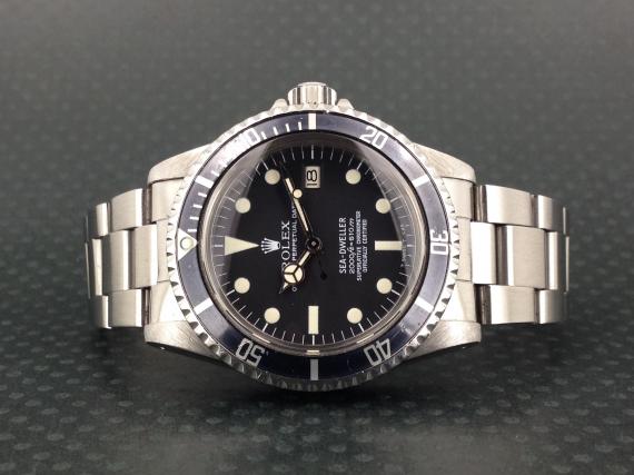 Rolex SeaDweller 1665 med den eftertragtede "Rail Dial". Uret kommer nyserviceret fra AD med to års garanti og er i flot stand. Der er tale om et samler sæt oprindelig solgt fra dansk forhandler i 1981. Uret kommer med boks, papirer, certifikat samt den oprindelige købskvittering.