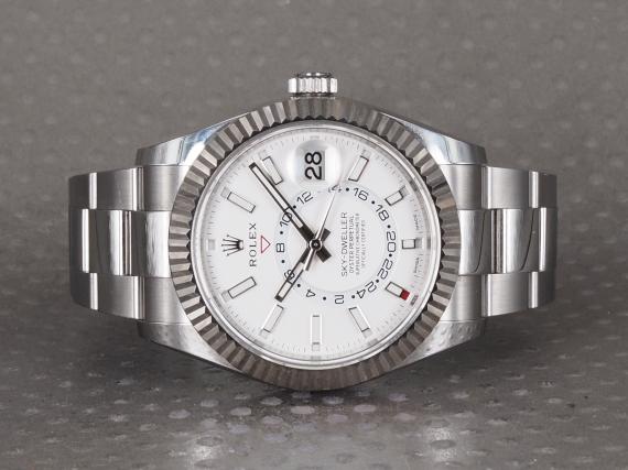 Sky-Dwelleren som blev lanceret i 2012, med teknologi beskytte af intet mindre end 14 patenter, er vel nok Rolex mest teknisk avancerede ur til dato. Urets design er yderst sofistikeret med selve kassen i Rolesor, en kombination af 904L stå og hvidguld, den flotte hvide skive med hvide markeringer og features som bla. aflæsning af to tidszoner på samme tid, månedsangivelse og "annual calender". Det hele styret af et Cal. 9001 værk.