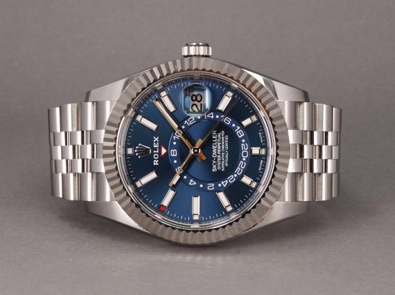 Sky-Dwelleren som blev lanceret i 2012, med teknologi beskytte af intet mindre end 14 patenter, er vel nok Rolex mest teknisk avancerede ur til dato. Urets design er yderst sofistikeret med selve kassen i Rolesor, en kombination af 904L stå og hvidguld, den flotte blå skive med hvide markeringer og features som bla. aflæsning af to tidszoner på samme tid, månedsangivelse og "annual calender". Det hele styret af et Cal. 9001 værk.