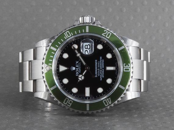 Rolex Submariner, ref. 16610LV "Kermit" fra 2005 - D4 serie - uden ROLEXROLEXROLEX graveret i rehaut.